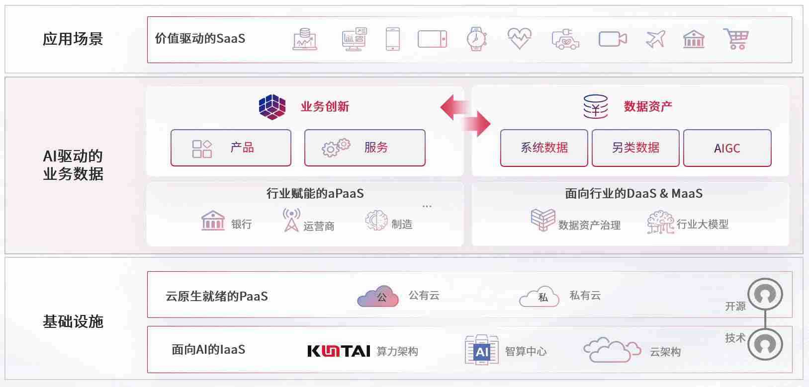 数字时代,,,,围绕企业数字化转型的关键要素,,太阳成集团122ccvip数码开创性的提出数云融合战略和技术体系框架,,,着力在云原生、、、数字原生、、、、AI原生和信创产业上架构产品和服务能力,,为处在不同数字化转型阶段的快消零售、、汽车、、金融、、、、医疗、、政企、、教育、、、运营商等行业客户提供泛在的敏捷IT能力和融合的数据驱动能力,,构建跨界融合创新的数字业务场景和新业务模式,,助力企业级客户建立面向未来的核心能力和竞争优势,,,,全面推动社会的数字化、、智能化转型升级。。。。